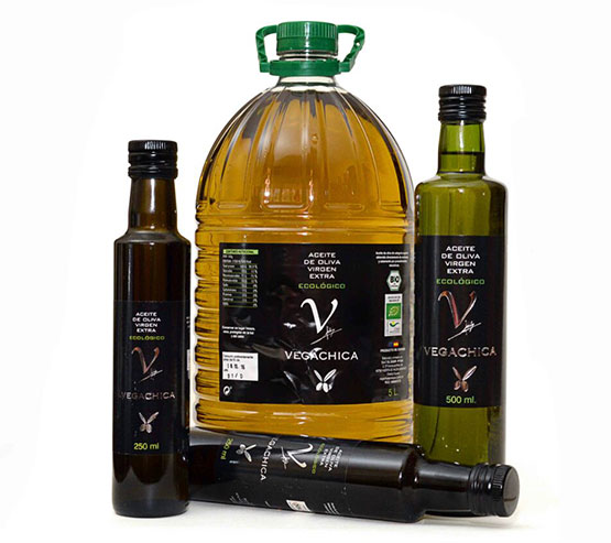 Aceites de oliva virgen extra de las variedades PICUAL, CORNICABRA y ARBEQUINA en formatos de 250 ml, 500 ml y 5l.